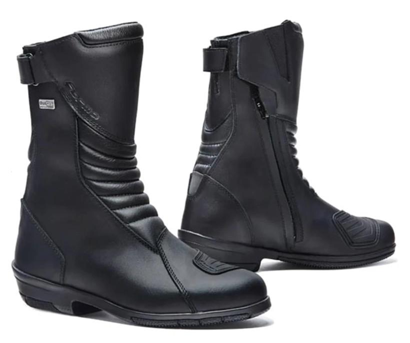 Forma Rose Outdry dame motorcykelstøvler er en elegant blanding af stil og sikkerhed, designet specielt til kvinders fødder. Fremstillet af sort fuldnarvet læder og udstyret med en hævet sål, tilbyder disse støvler den nyeste OutDry® vandtætningsteknologi. En fuldlængde YKK®-side lynlås og en elastisk bagpanel sikrer, at støvlerne passer til forskellige lægstørrelser og gør dem nemme at tage af og på. Indeni gemmer sig den nødvendige beskyttelse og forstærkning, der opfylder CE-niveau sikkerhedsstandarder,